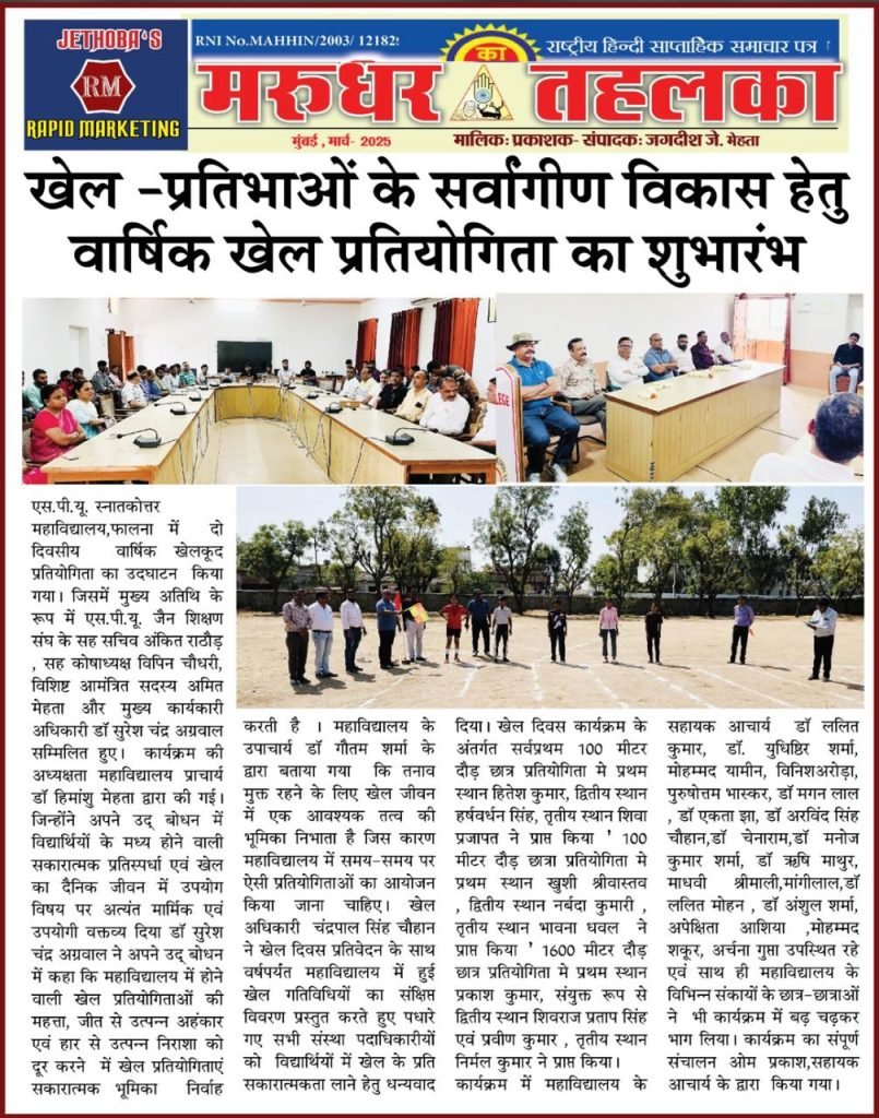 खेल प्रतिभाओं के सर्वांगीण विकास हेतु वार्षिक खेल प्रतियोगिता का शुभारंभ