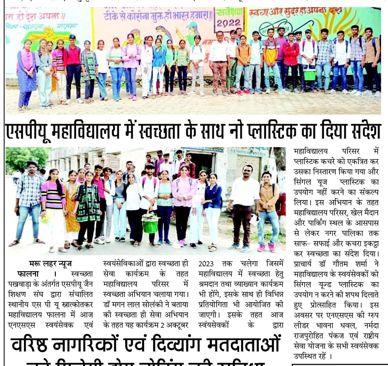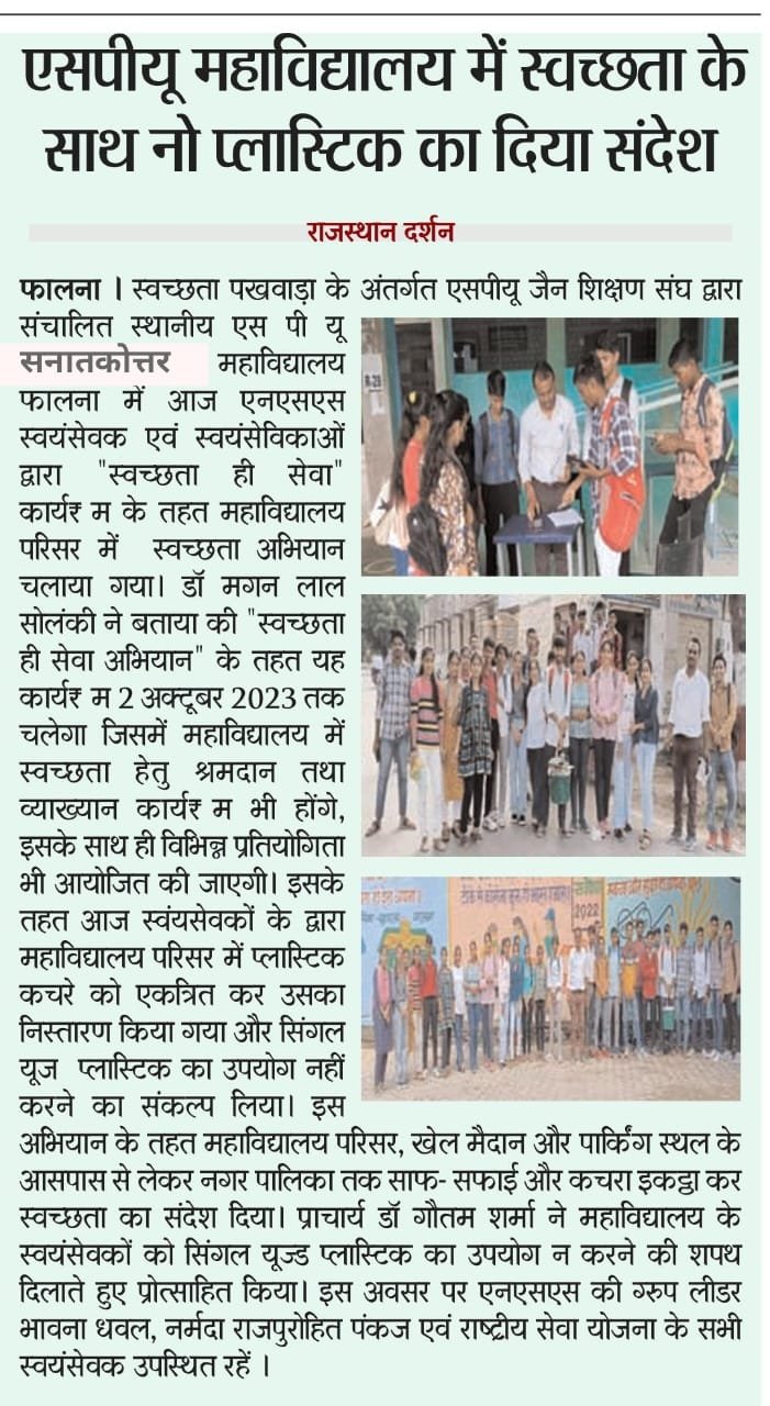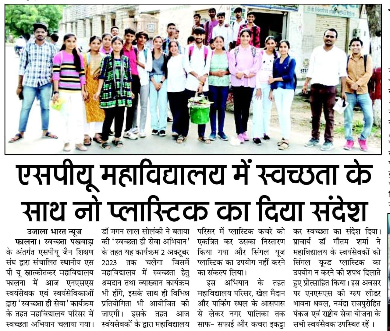 महाविद्यालय में स्वछता के साथ नो प्लास्टिक का दिया सन्देश