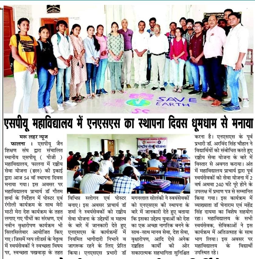 महाविद्यालय में NSS का स्थापना दिवस धूमधाम से मनाया गया