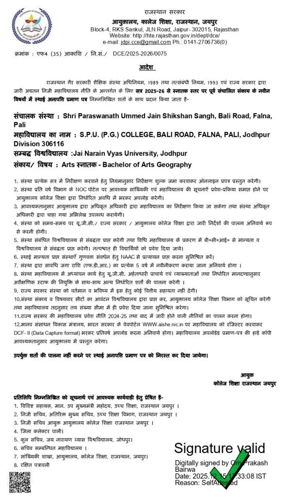 Affiliated to Jai Narain Vyas University, Jodhpur